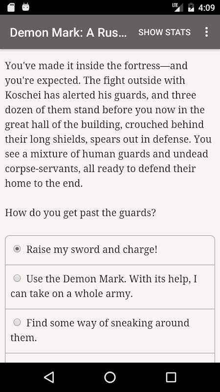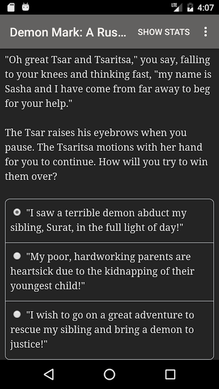 "Demon Mark: A Russian Saga" is a 200,000-word interactive fantasy novel by Vlad Barash and Lorraine Fryer, steeped in Russian folklore. It's entirely text-based, without graphics or sound effects, and fueled by the vast, unstoppable power of your imagination.
