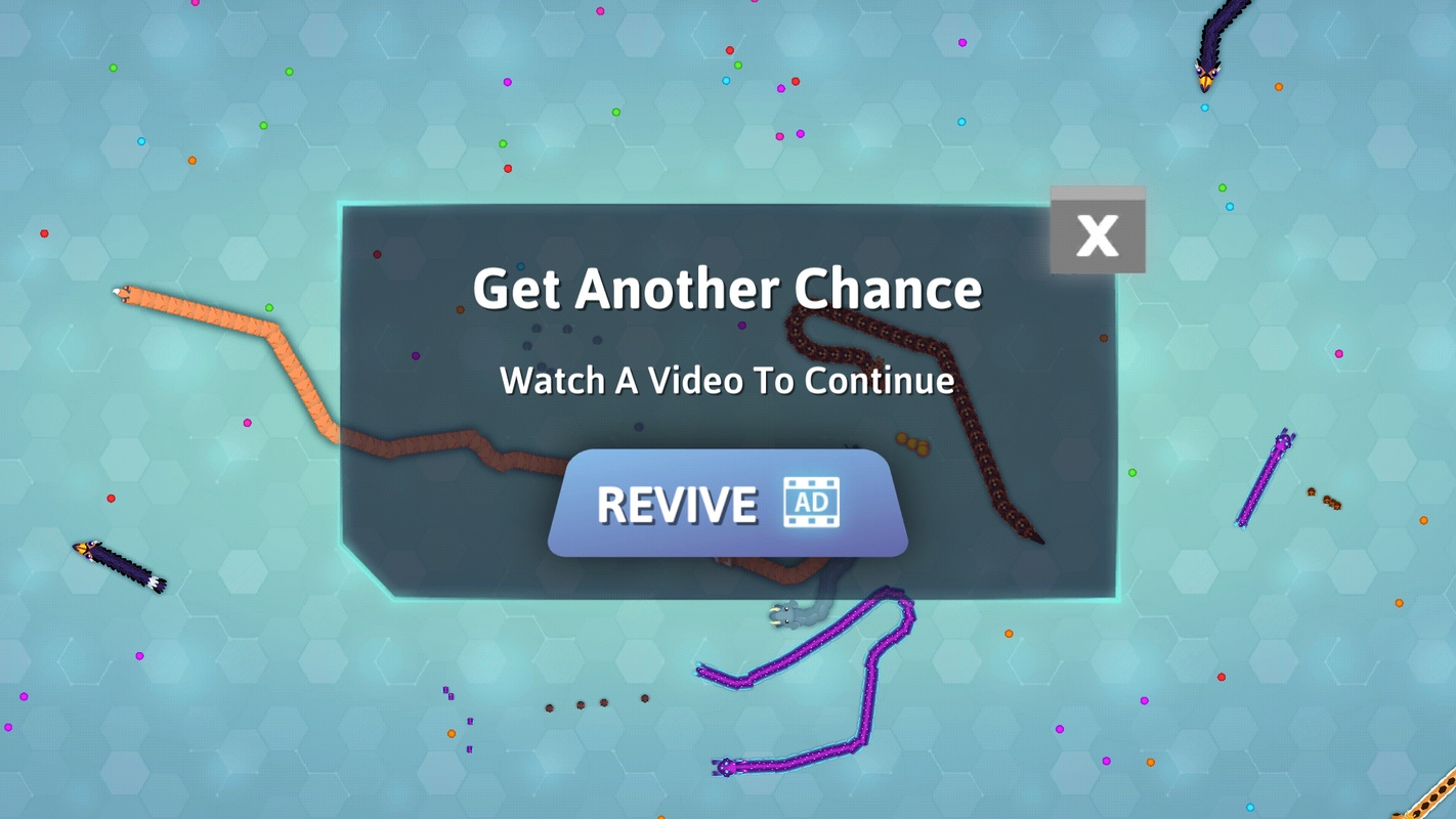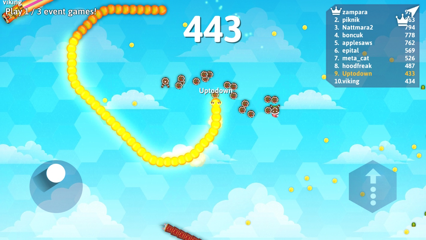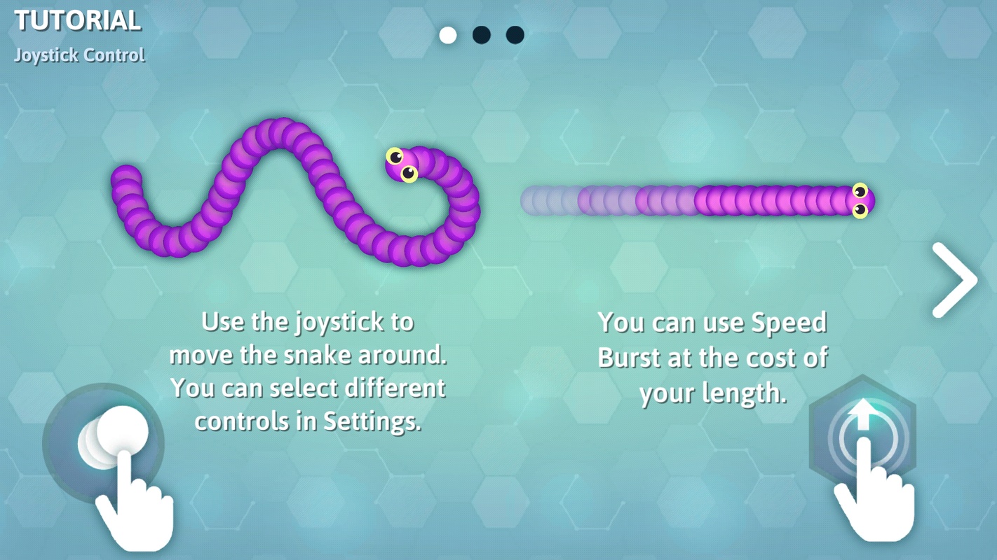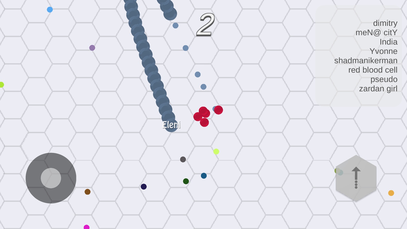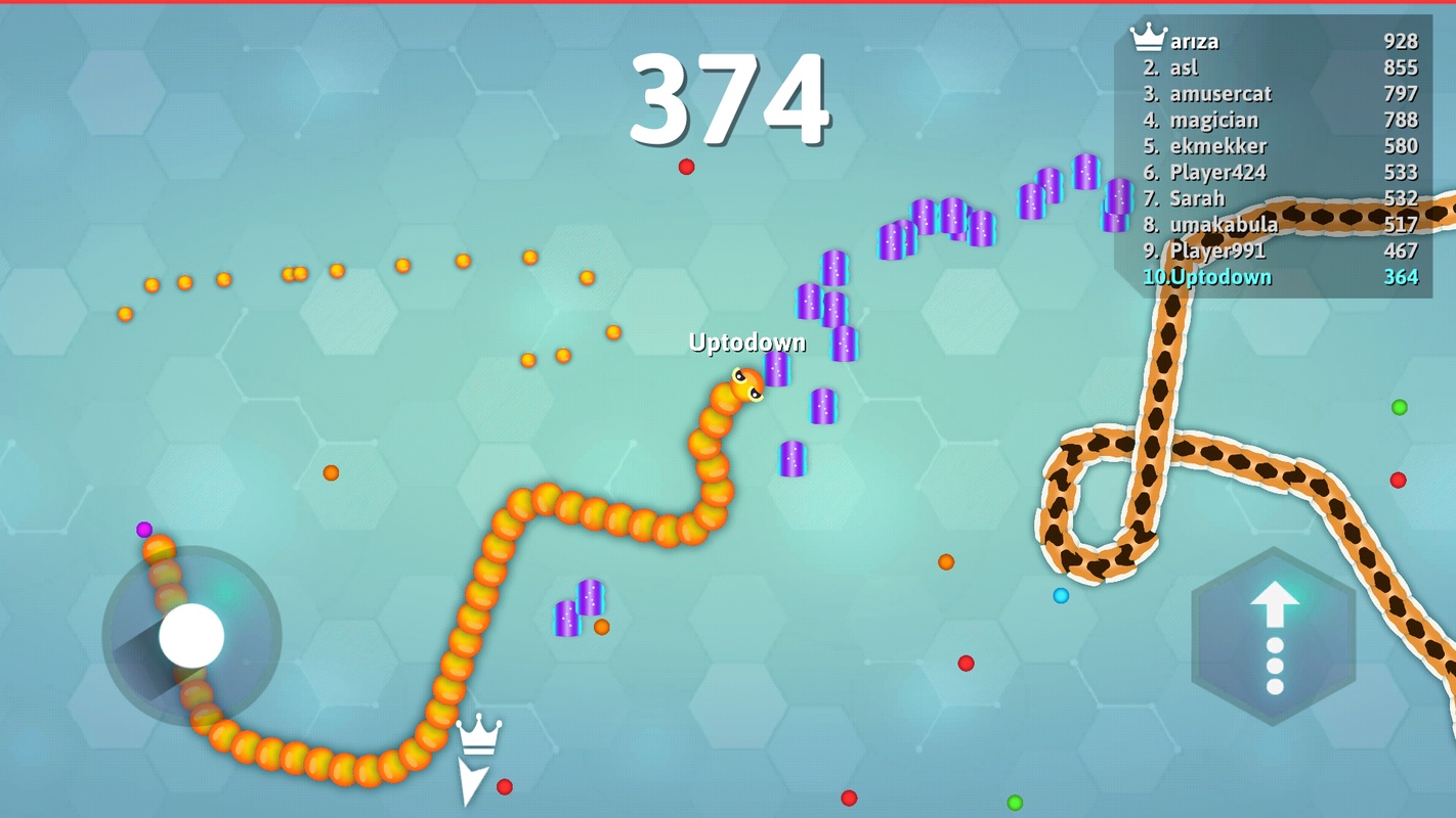 There are two ways to eat the balls. The first is eating the loose balls in the setting, which will give you one point for each ball. But, when a snake collides with another, or against the wall, all their points are turned into balls worth 10 points each. So, you've got to get the other snakes to collide head-on with your tail to get all their points.