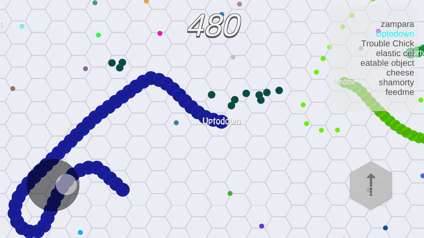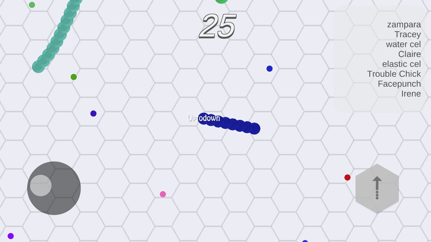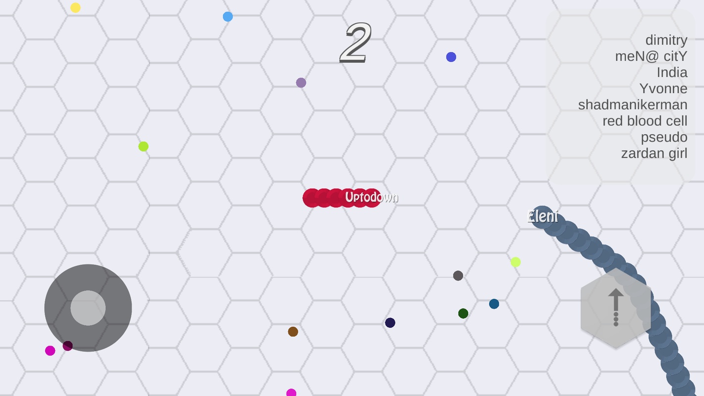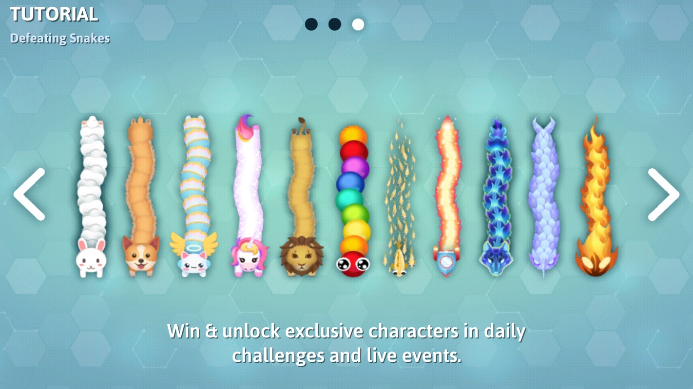 There are two ways to eat the balls. The first is eating the loose balls in the setting, which will give you one point for each ball. But, when a snake collides with another, or against the wall, all their points are turned into balls worth 10 points each. So, you've got to get the other snakes to collide head-on with your tail to get all their points.