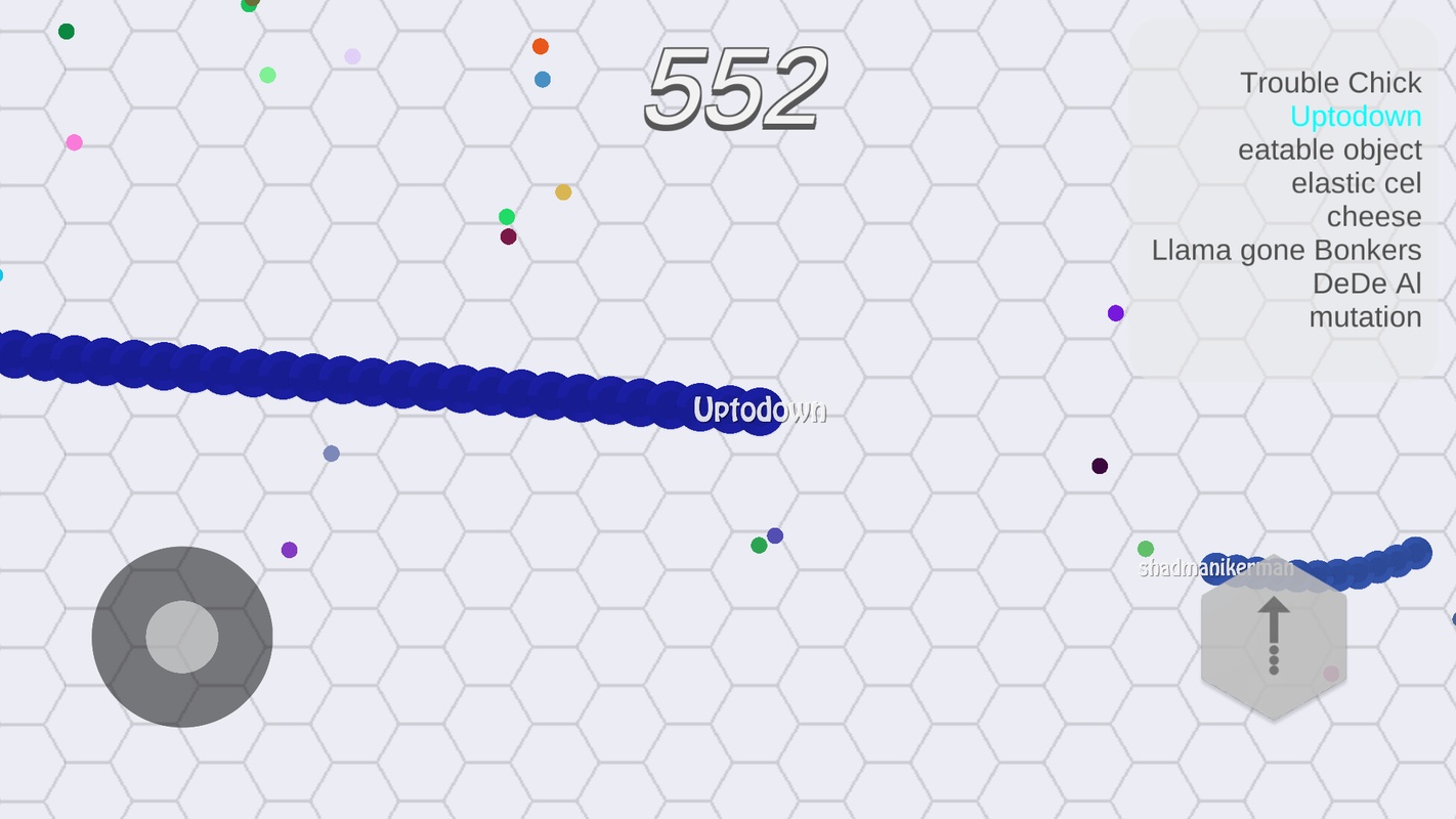 Food pellets are randomly generated throughout the arena. Consuming a pellet increases the player's length by one segment. There are also special pellets that provide speed boosts or temporary invincibility.