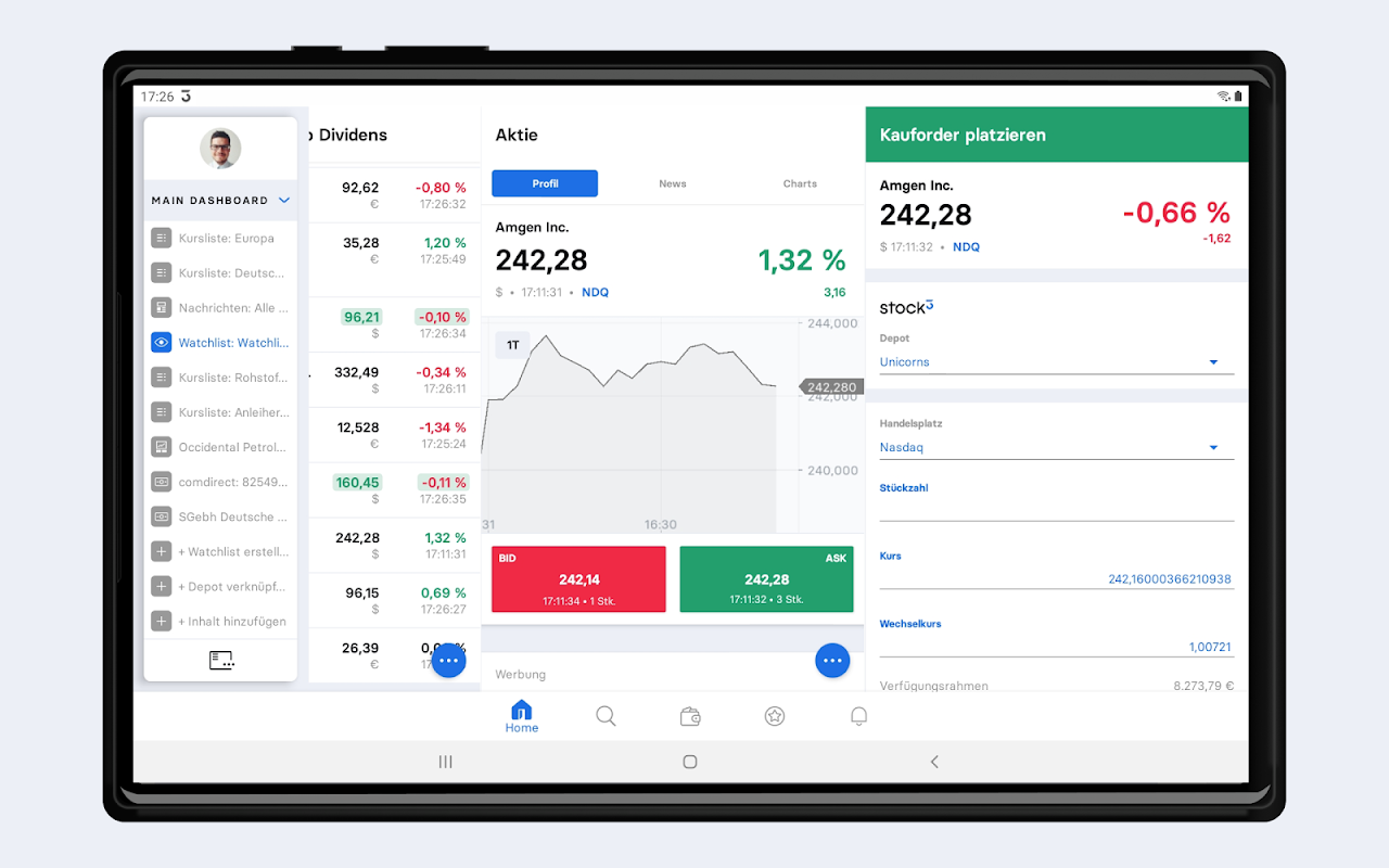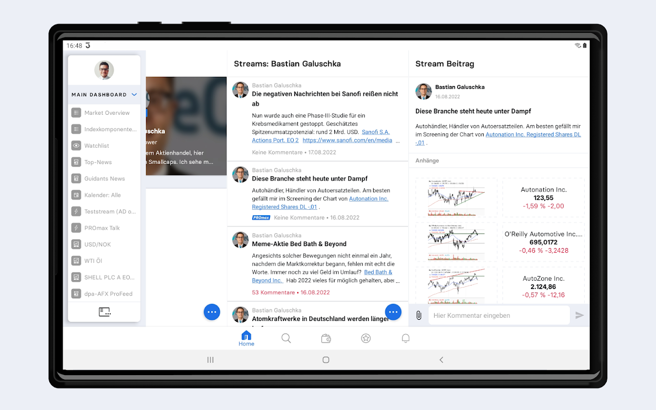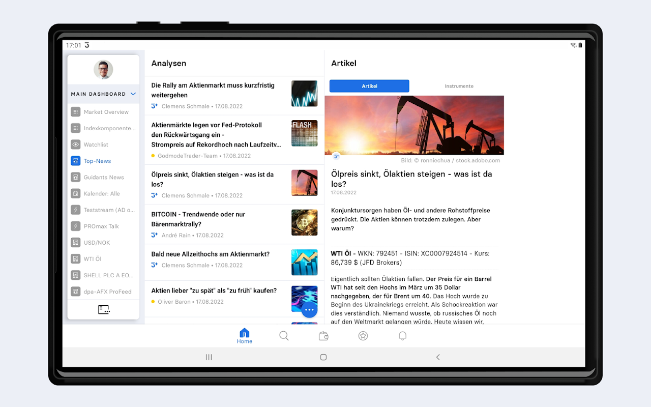 Trade stocks, manage accounts and utilize market news for trading decisions – Everything using your existing account with your broker! Use stock3 to keep an eye on the stock market, follow and analyze DAX and stock prices, participate in discussions with professional traders and trade via our connected brokers.