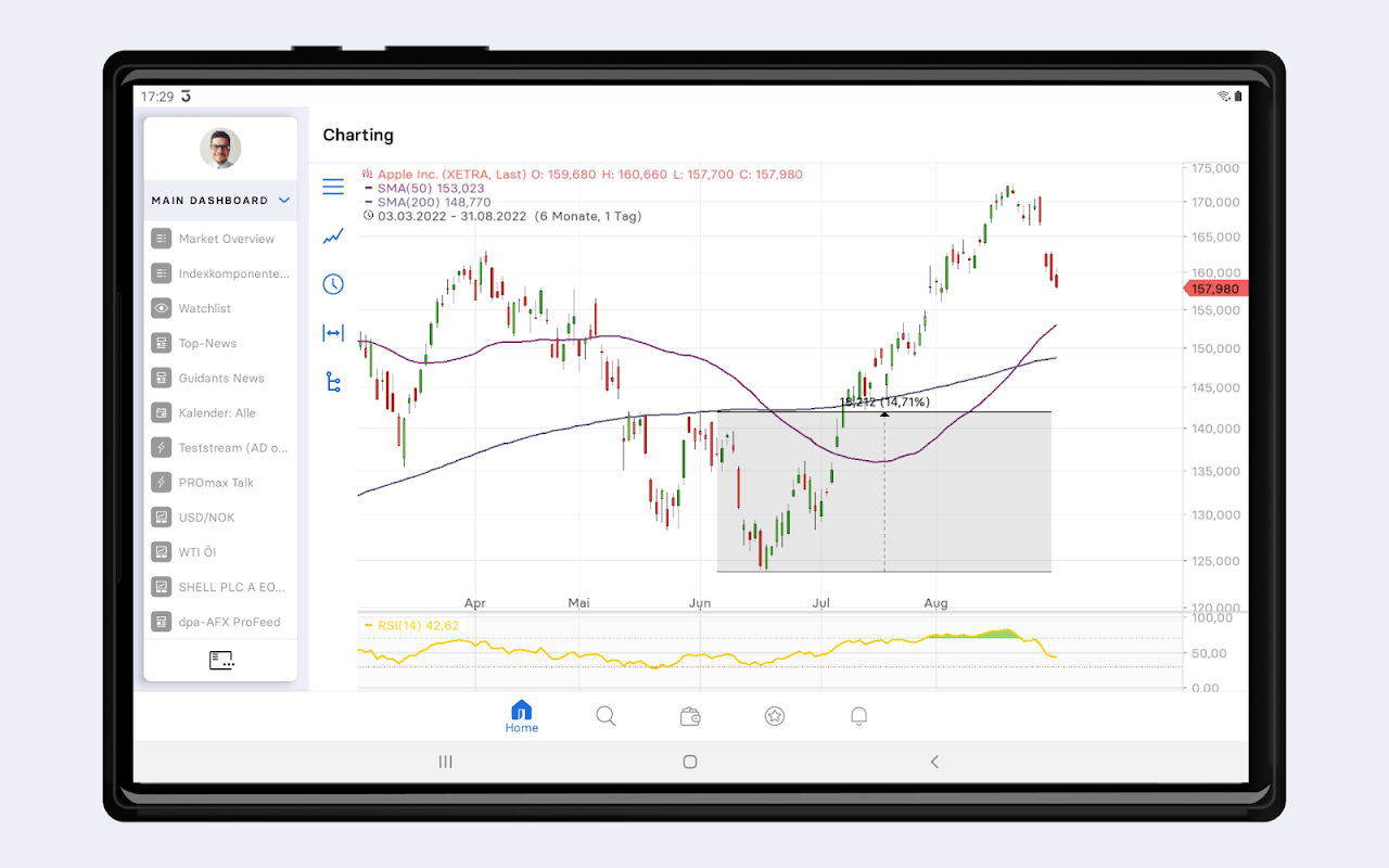 - Chart analysis as part of the PRO version: edit and save your analyses with dozens of indicators and technical tools