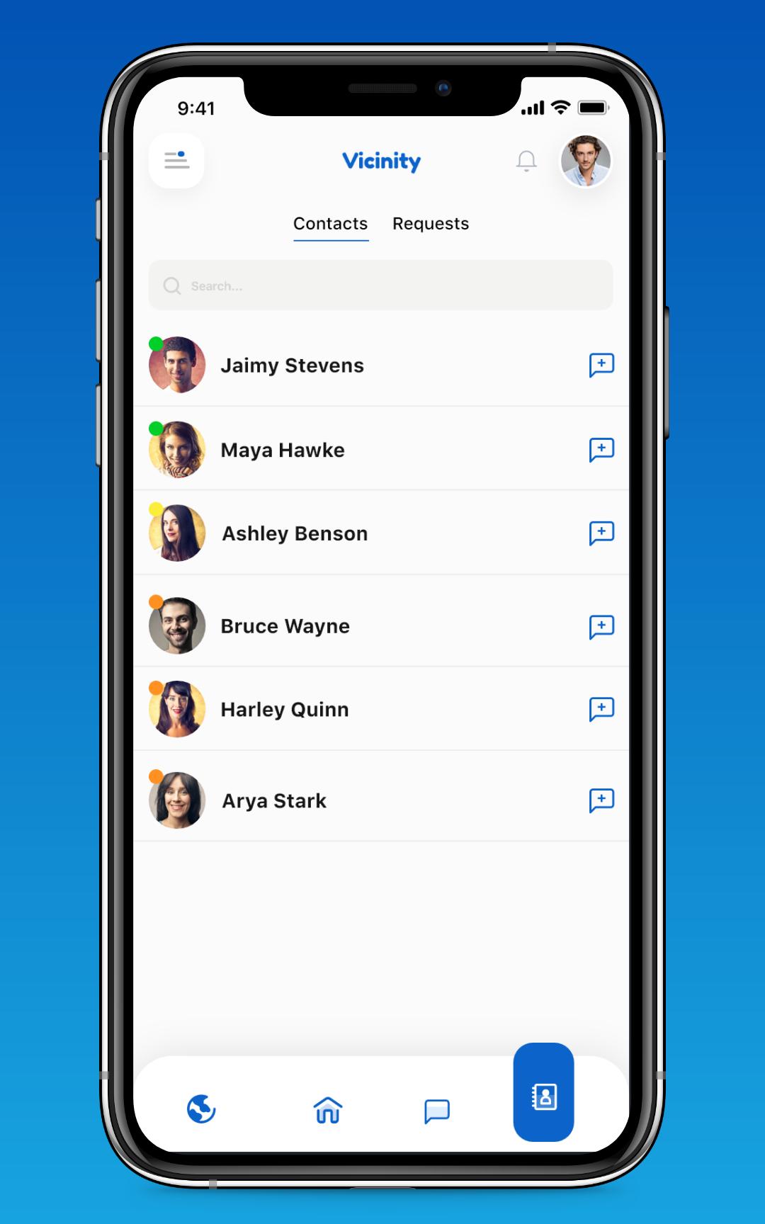 Feeling lonely? Set the radius and find real people nearby with mutual interests. Vicinity allows you to instantly connect and socialize in a unique way. Share thoughts and useful information, or ask questions about any topic to learn from others as well.