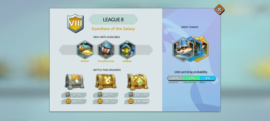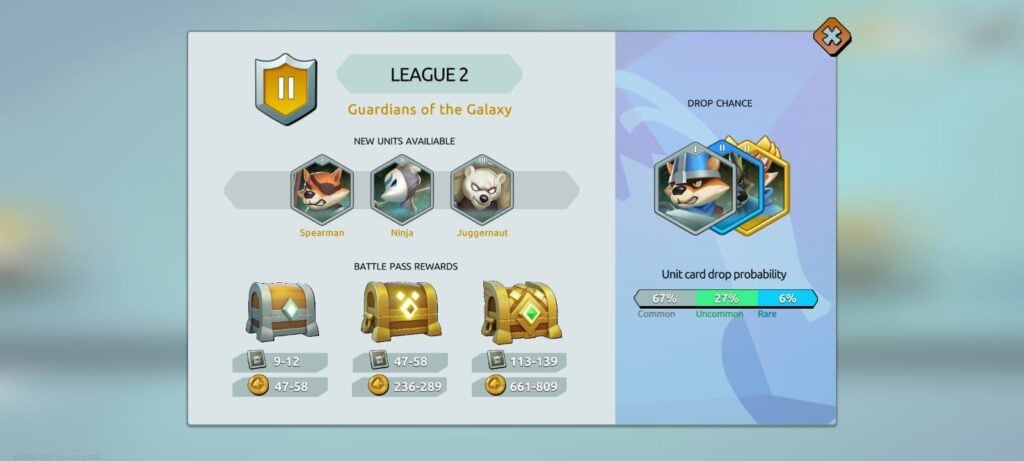As you progress through the game, new leagues will unlock and with it new fighting units. So every time you collect gold coins from competing in battles or opening chests in battle pass, make sure you upgrade the fighting units. A basic fighting unit will only take you so far.