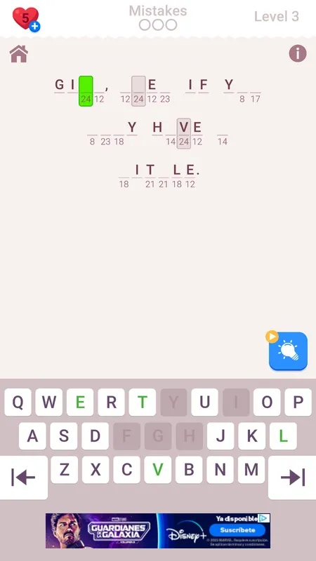 One of the most fun aspects of Cryptogram Letters and Numbers is that it has various levels with different themes. For example, if you are a movie fanatic, you will enjoy hundreds of levels, discovering the hidden message in each one. Find the movie's name or a well-known phrase while testing your deduction skills. You can always use the hints if you get stuck or don't know what to do next.