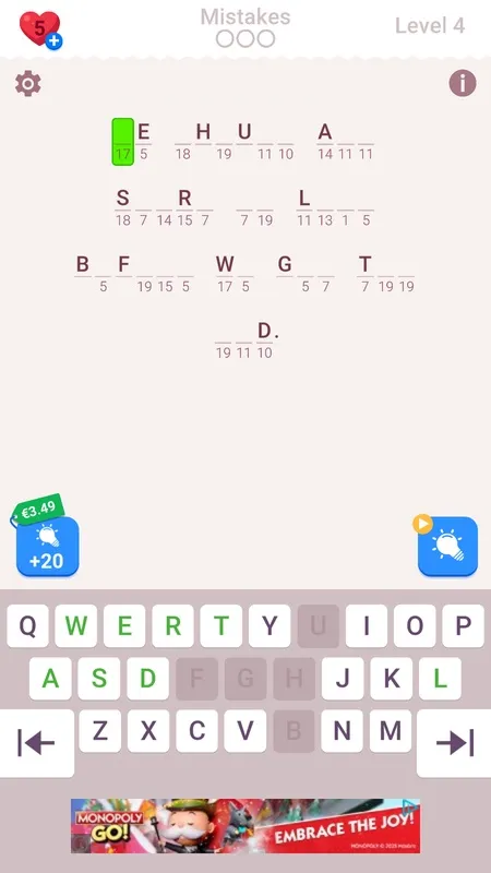 Cryptogram Letters and Numbers is an exciting that puts your brain to the test with secret encrypted messages. With daily challenges and captivating puzzles, you will test your language skills and logic in an immersive experience. Download Cryptogram Letters and Numbers for free and dive into the fascinating adventure of deciphering hidden words to unveil the secret message.
