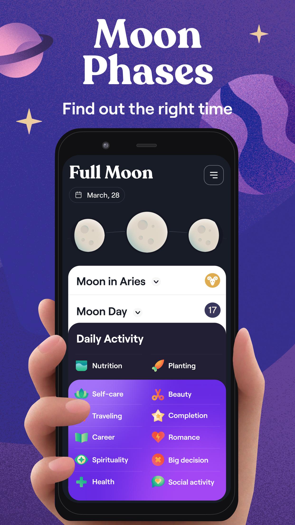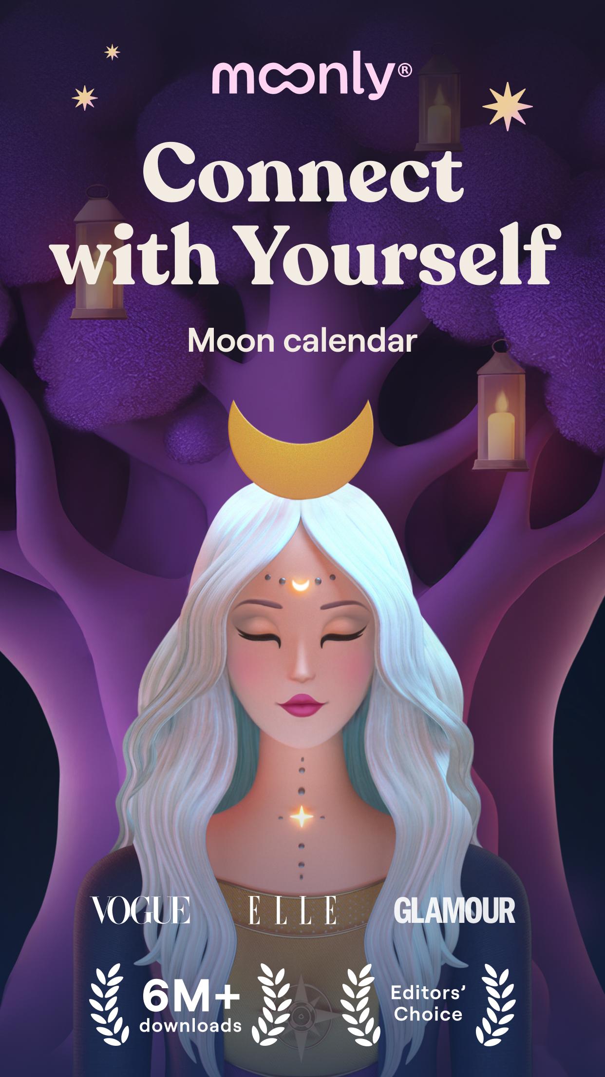 Lebe nach dem Kalender und Rhythmus der Mondphasen. Heilen Sie Ihre Seele und harmonisieren Sie Ihr Leben gemeinsam mit Moonly. Nutzen Sie einen Mondführer mit wechselndem Mondzyklus und Vollmondritualen, um Ihre Ziele zu erreichen. Der Mondkalender zeigt Ihrem Mondzeichen den Weg in die Zukunft.