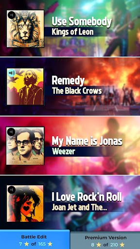 Wenn Sie also ein Fan von Kiss, Offspring, The Who, Eric Clapton oder einem anderen berühmten Fan sind Band, Guitar Band Battle ist das perfekte Spiel für Sie! Egal, ob Sie Ihre Fähigkeiten gegen andere Spieler aus der ganzen Welt testen oder einfach nur ein aufregendes Rhythmusspiel genießen möchten, bei Guitar Band Battle ist für jeden etwas dabei. Laden Sie es jetzt herunter und beginnen Sie Ihre Reise zum Musik-Superstar!