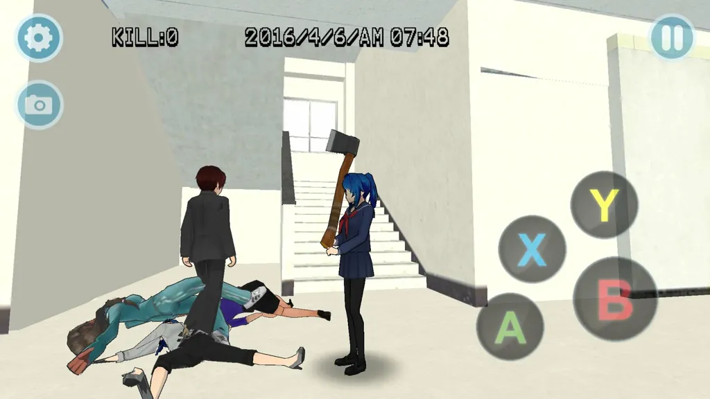 The main scenes in High School Simulator GirlA BT take place at school, but you can also run freely around the city. While you go from place to place you can interact with other characters in two ways: talking to them or killing them. When it comes to killing, you'll have tons of options given the wide variety of weapons you'll have to choose from.