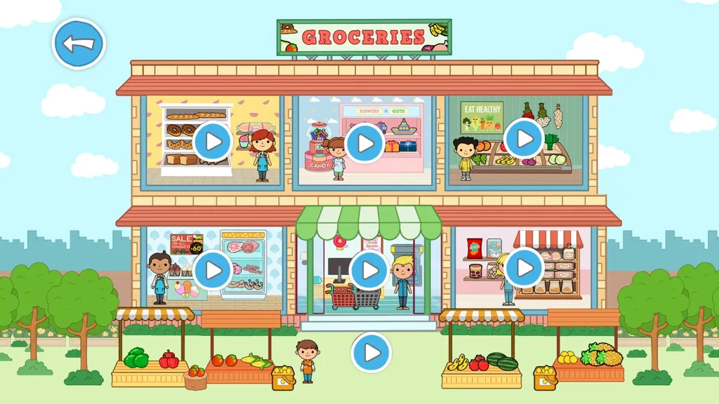 Download Lila's World: Grocery Store's APK to simulate shopping for groceries at the supermarket.