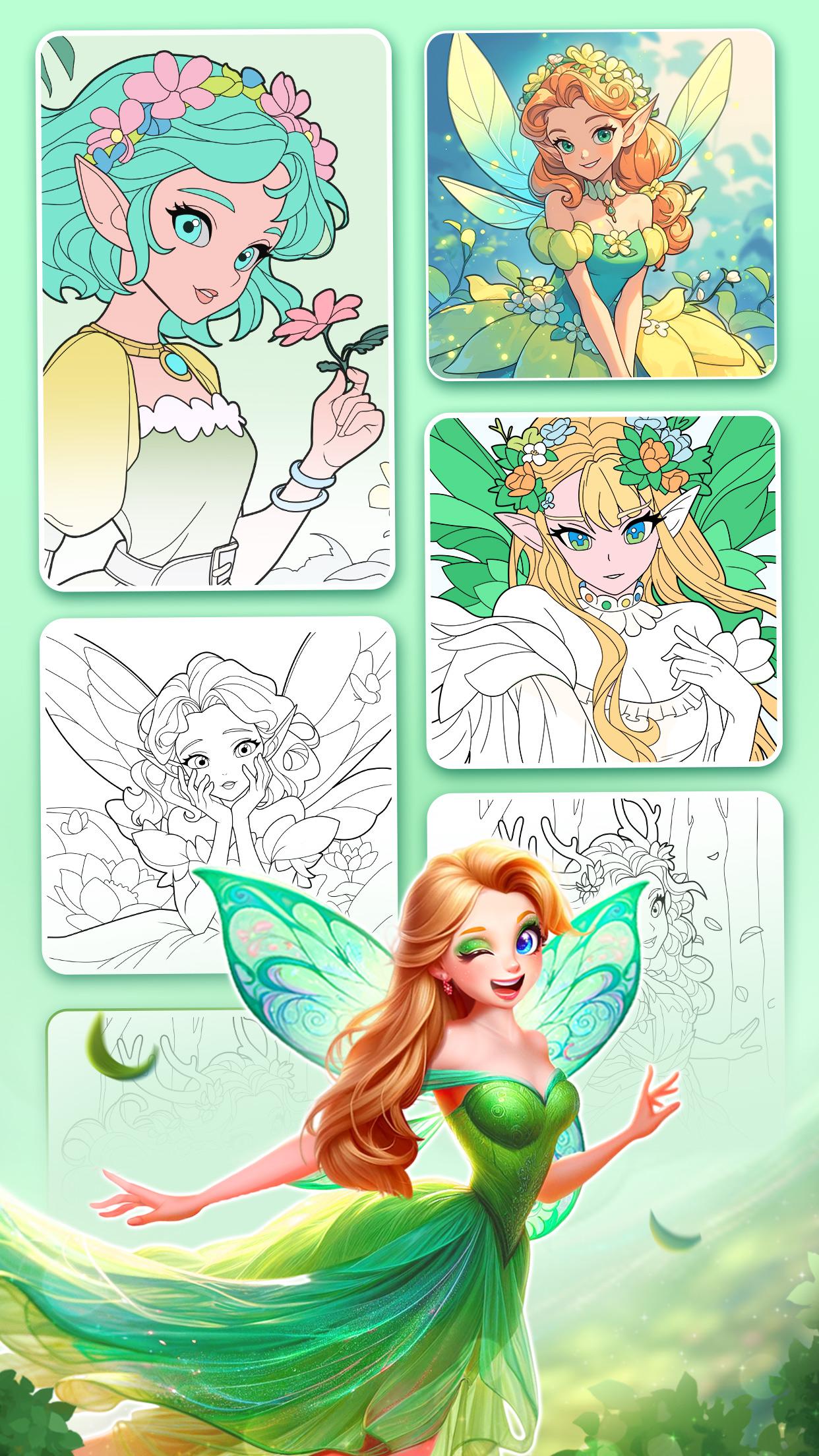 Each coloring page is beautifully designed and will take you into a fantasy world. You can choose to color princesses, elves, mermaids, flower fairies, and other characters and bring out the charm of each character!