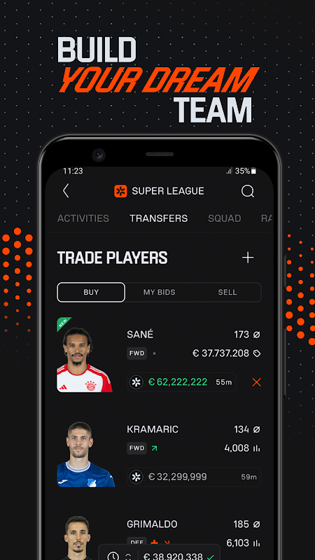 Здесь важно ваше чувство футбольной тактики и ваше седьмое чувство: на нашем динамичном трансферном рынке ежедневно предлагаются новые игроки Бундеслиги. Находите таланты и ловите их раньше других, чтобы построить правильный футбольный состав и составить команду своей мечты!