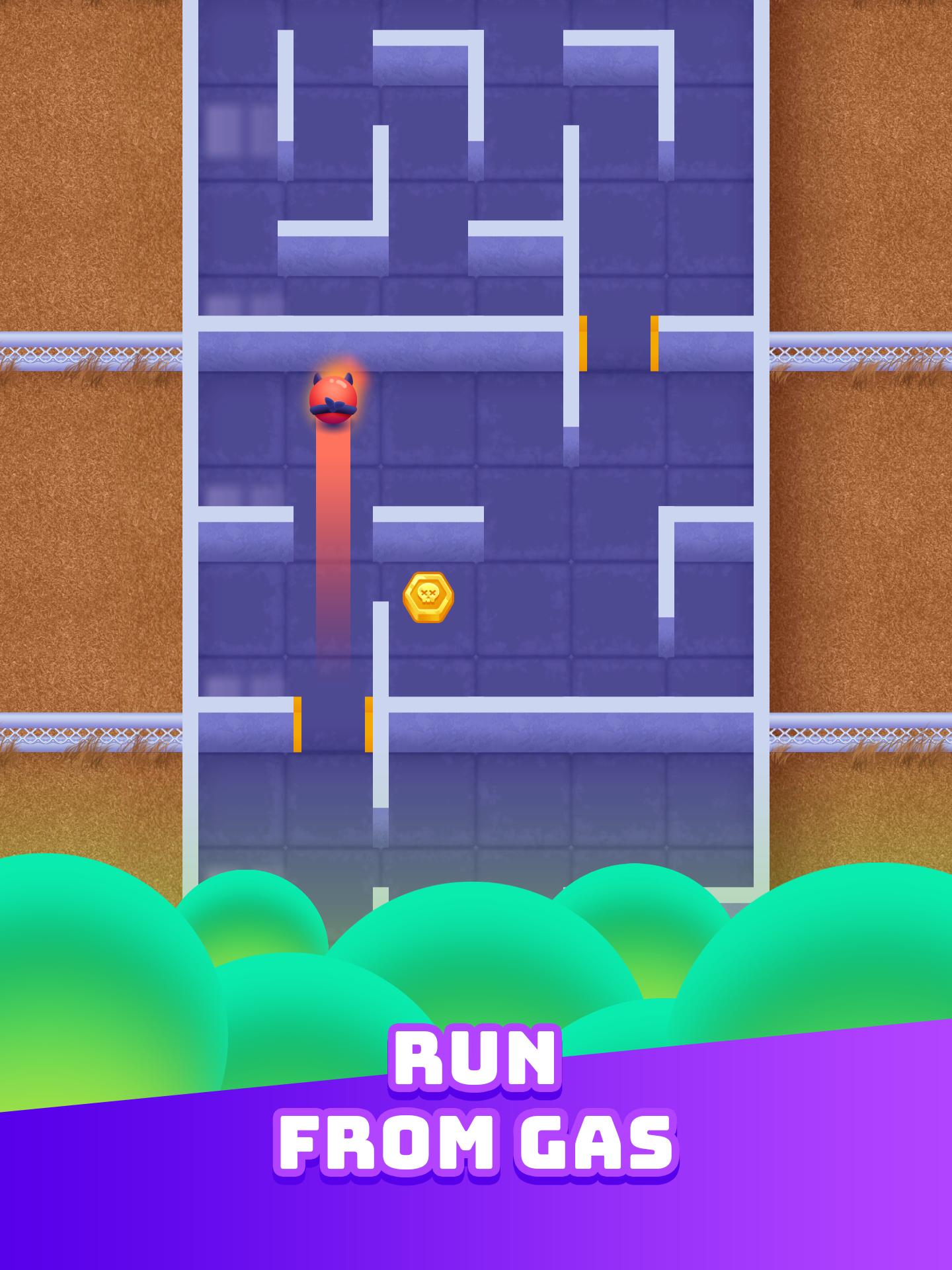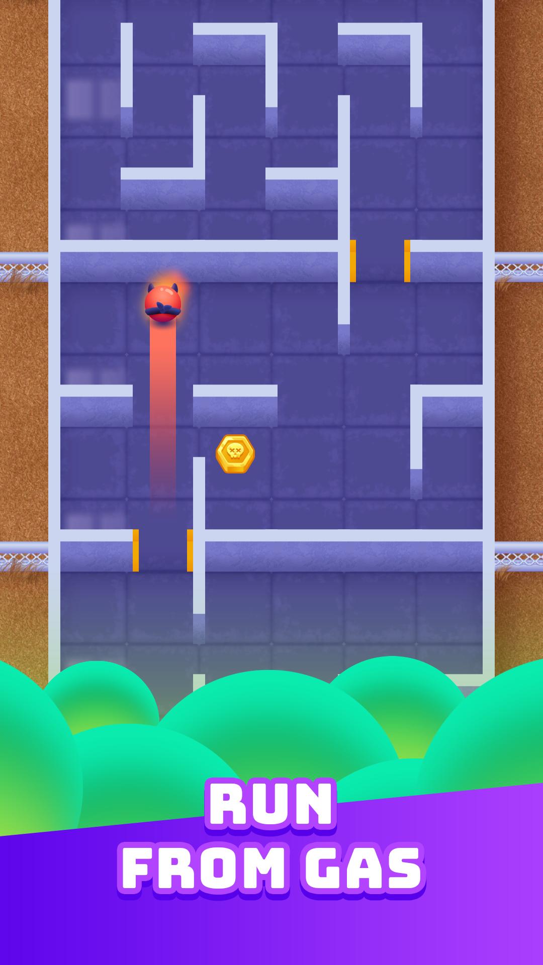 Run Out: Train your brain by having fun! Solve labyrinths by generated vertically. Avoid toxic gas and collect golds or boosters while solving puzzles. The gas will get faster and the labyrinths will become more difficult!