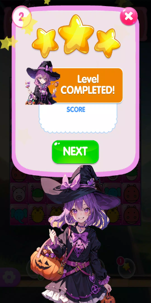 - Match-3 Mechanics:Match candies, pumpkins, and ghosts in rows of three or more to score points and progress through levels.